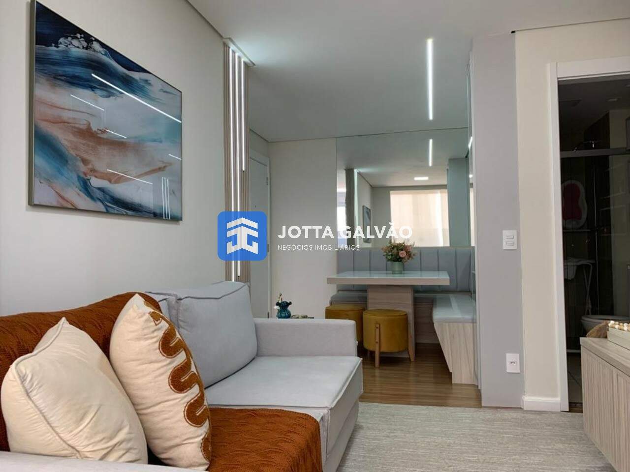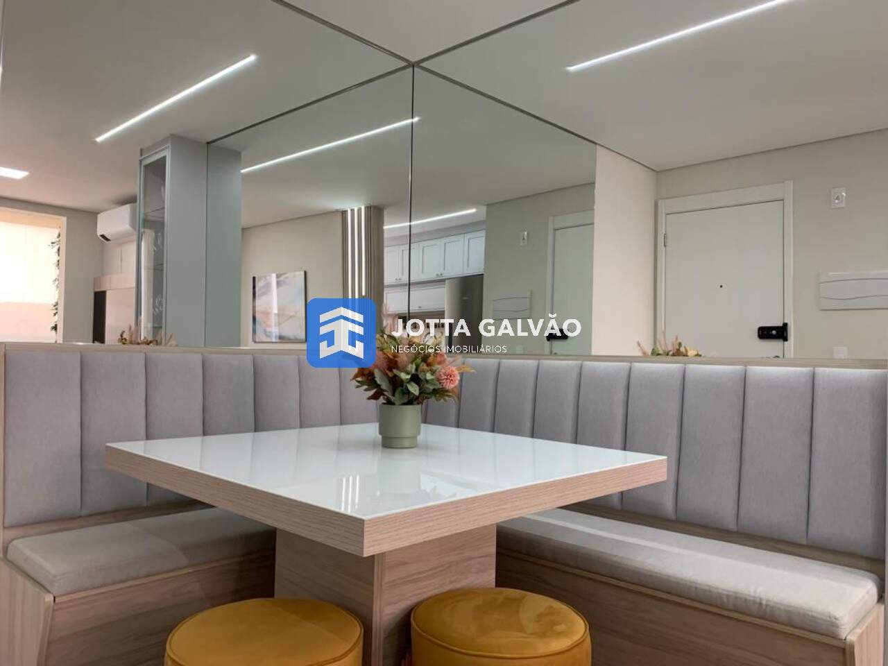 Sala Decorada: A sala de jantar e TV é um verdadeiro espetáculo, com móveis planejados que conferem elegância e conforto. Além disso, possui ar-condicionado para climatizar o ambiente durante todo o ano.