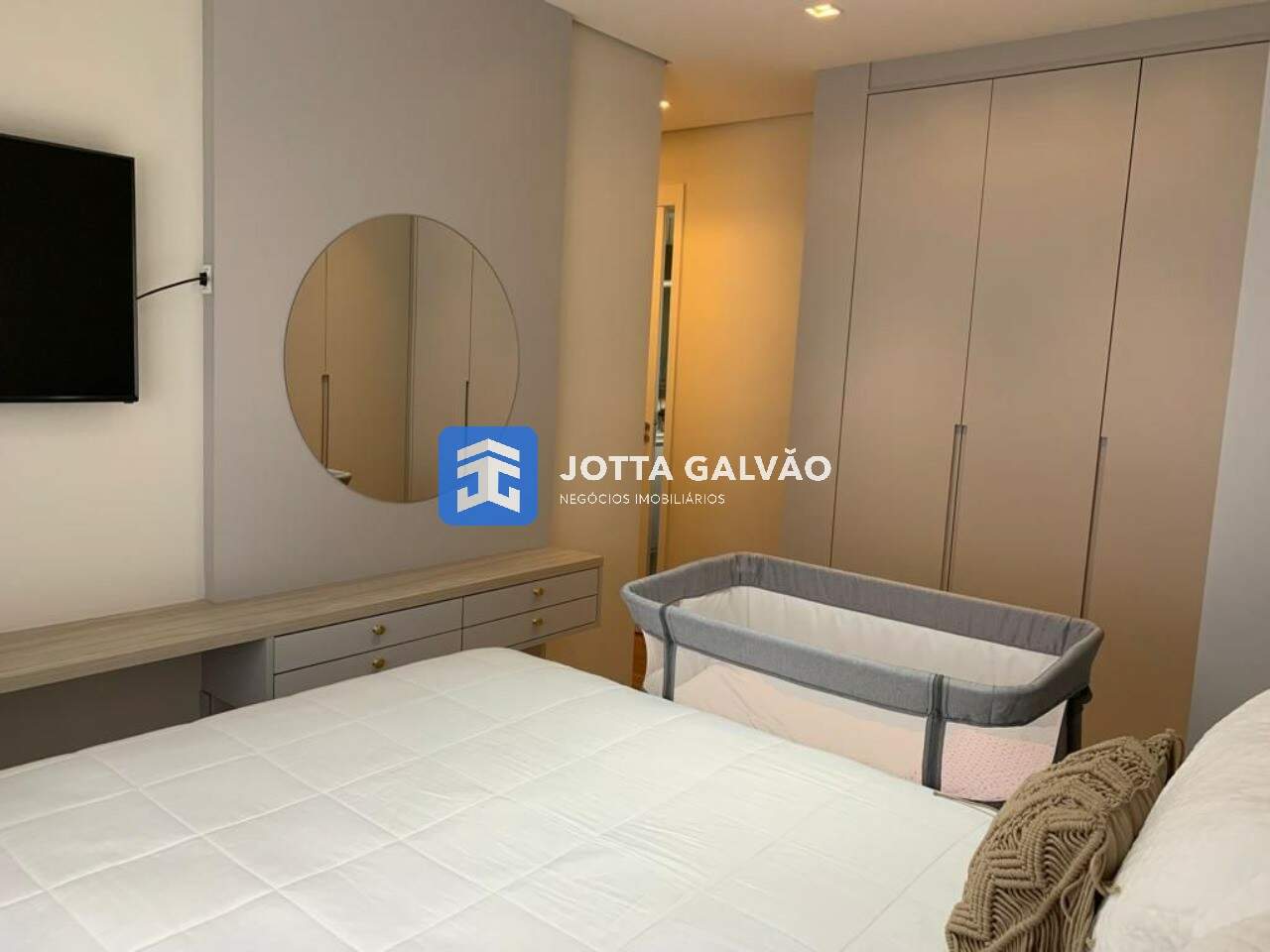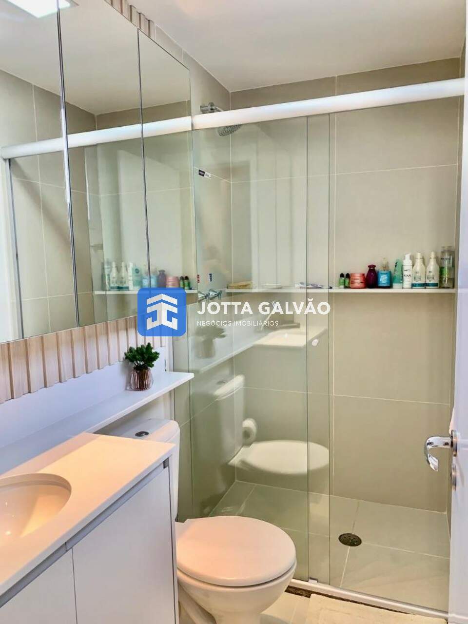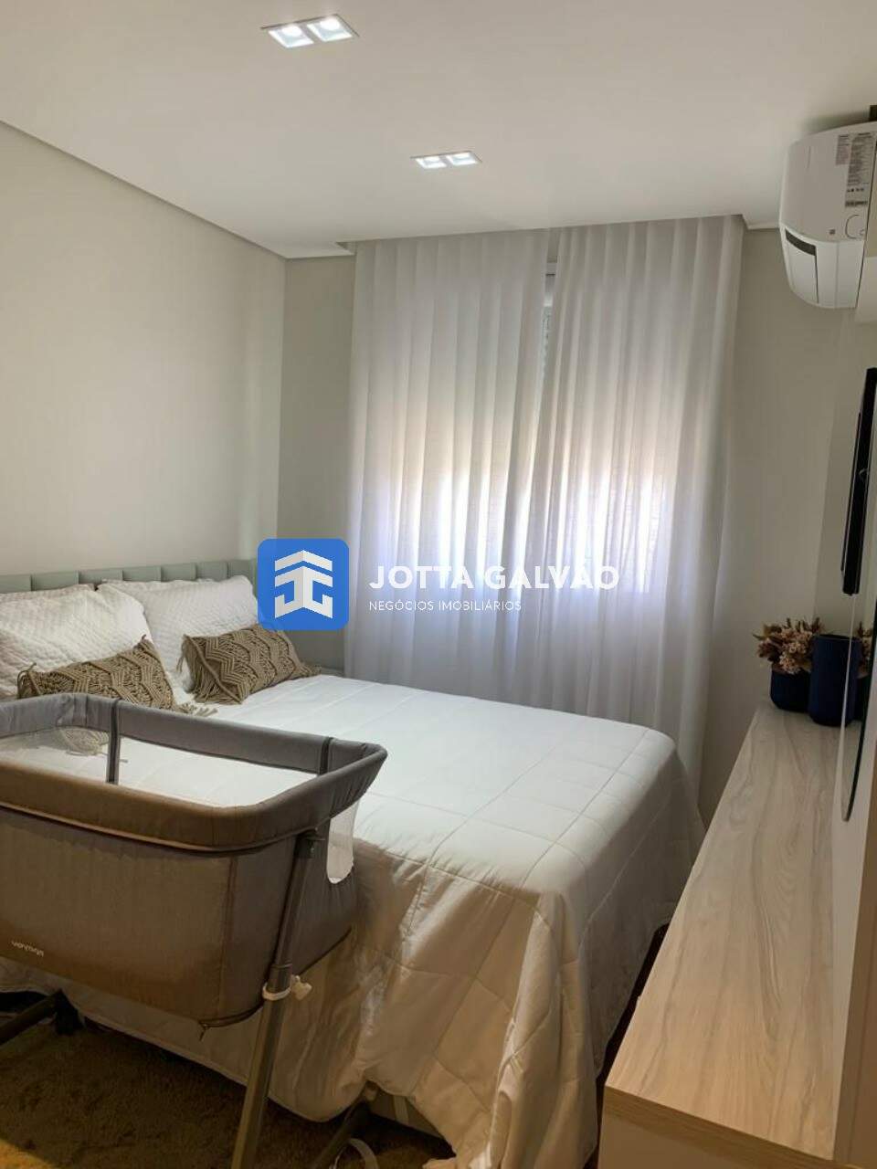 Quartos Planejados: Os quartos, um deles suíte, possuem armários planejados, painel de TV e cortina. Os banheiros também são um destaque, com armários, box blindex e chuveiro a gás.