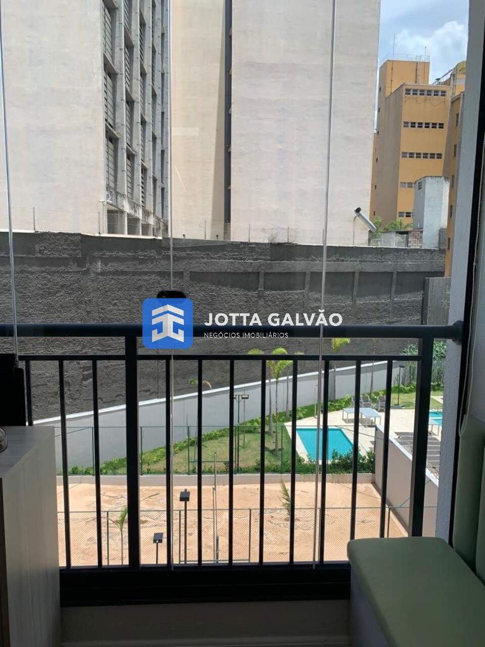 Sacada Aconchegante: A sacada, fechada com vidro e persiana, é um espaço aconchegante para relaxar e apreciar a vista.