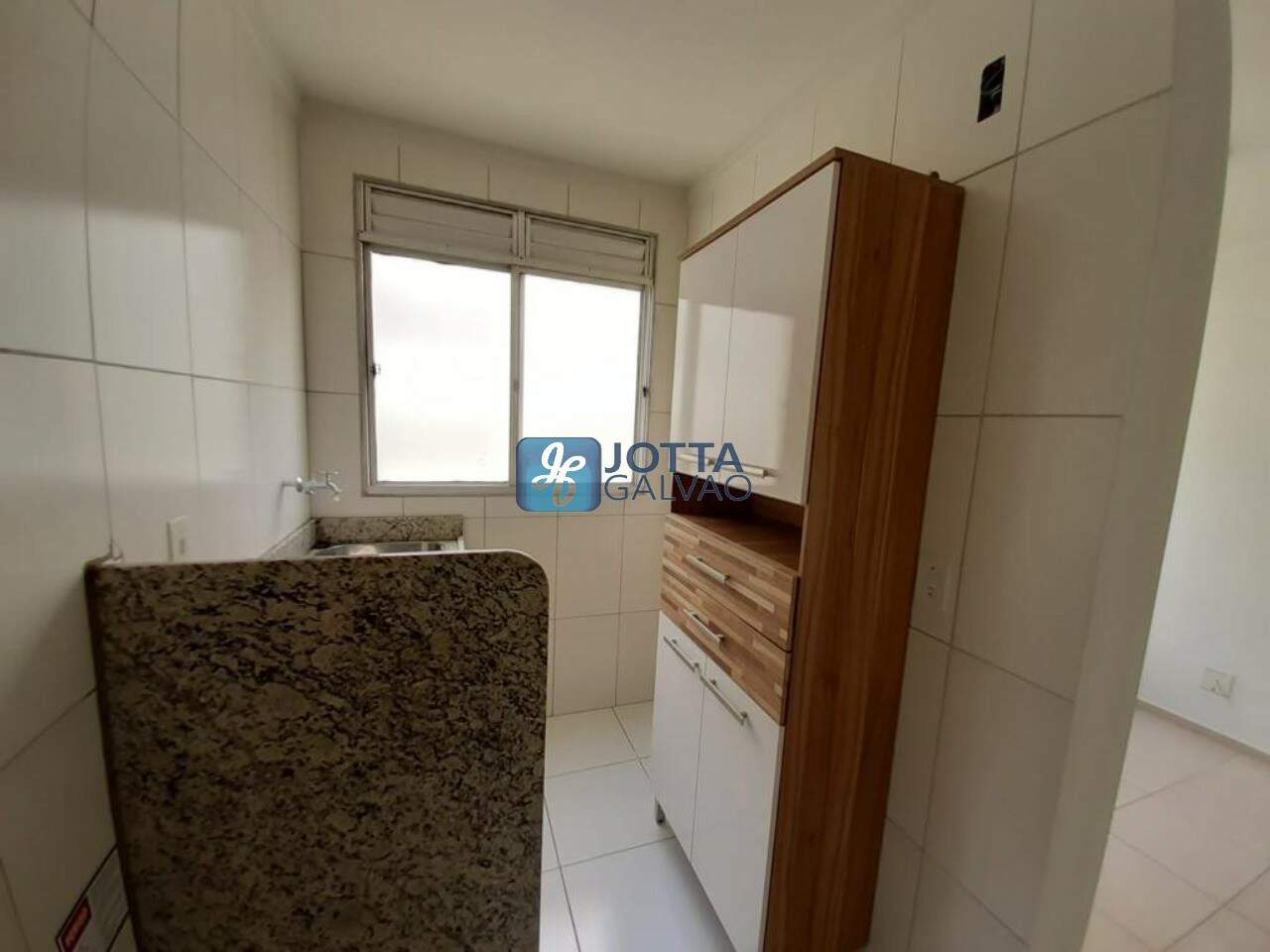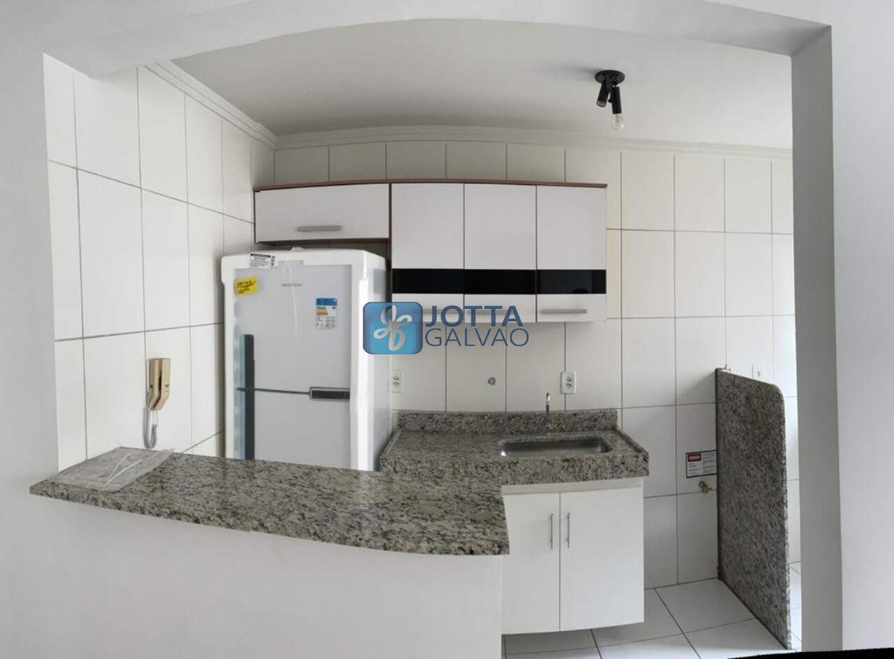 Belo apartamento com 2 dormitórios sendo uma suíte, sala para dois ambientes, cozinha com armários planejados e área de serviço integrada.