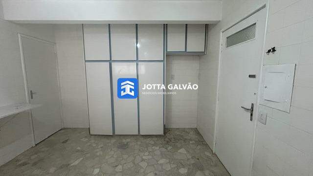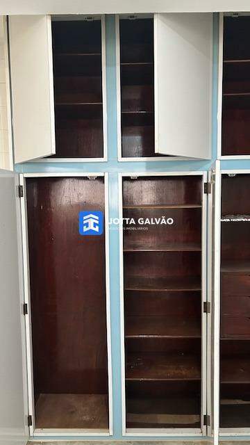 Cozinha grande com armários aéreos e depósito