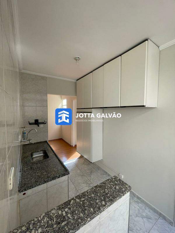 Cozinha funcional com armários e lavanderia integrada