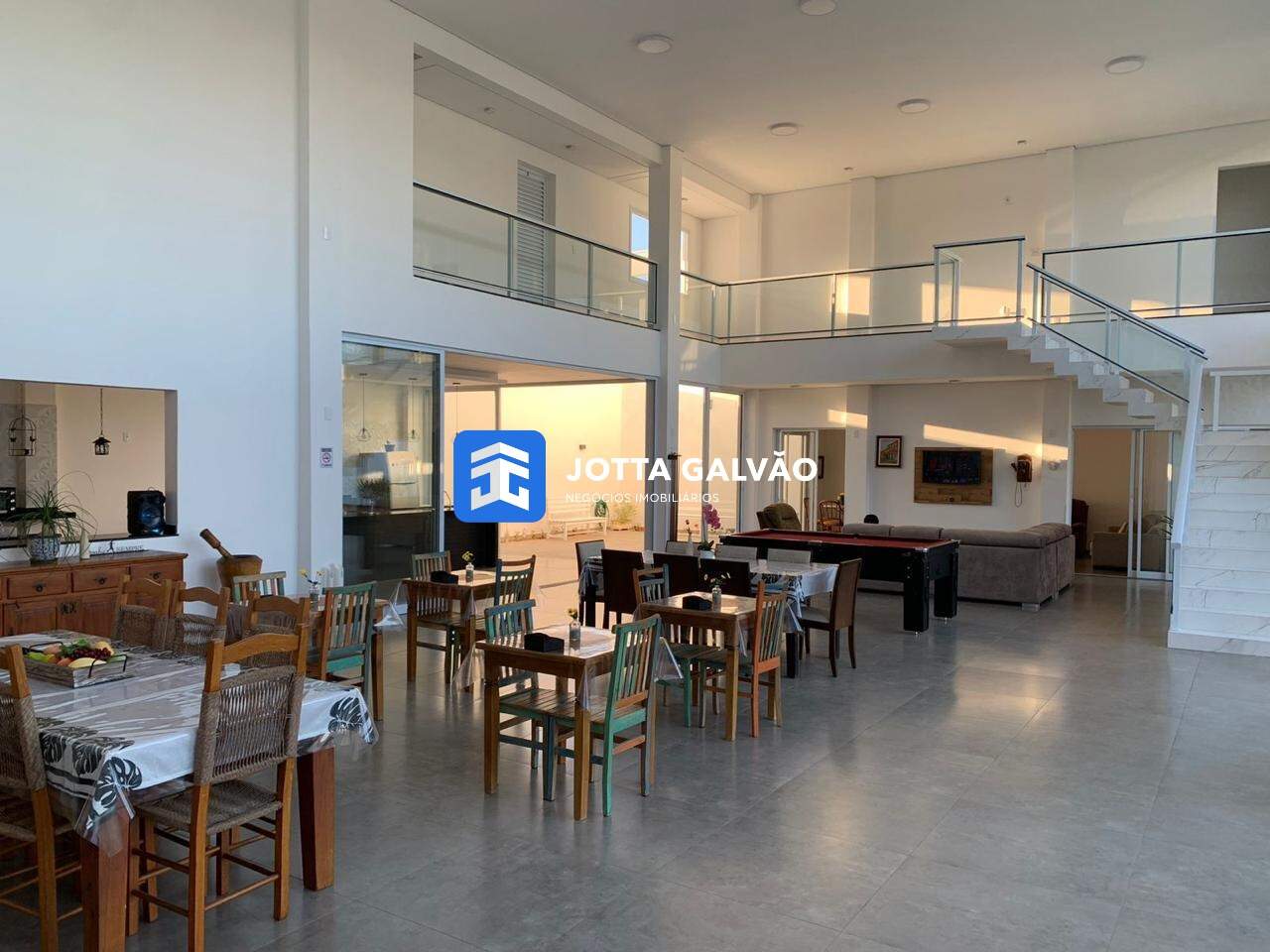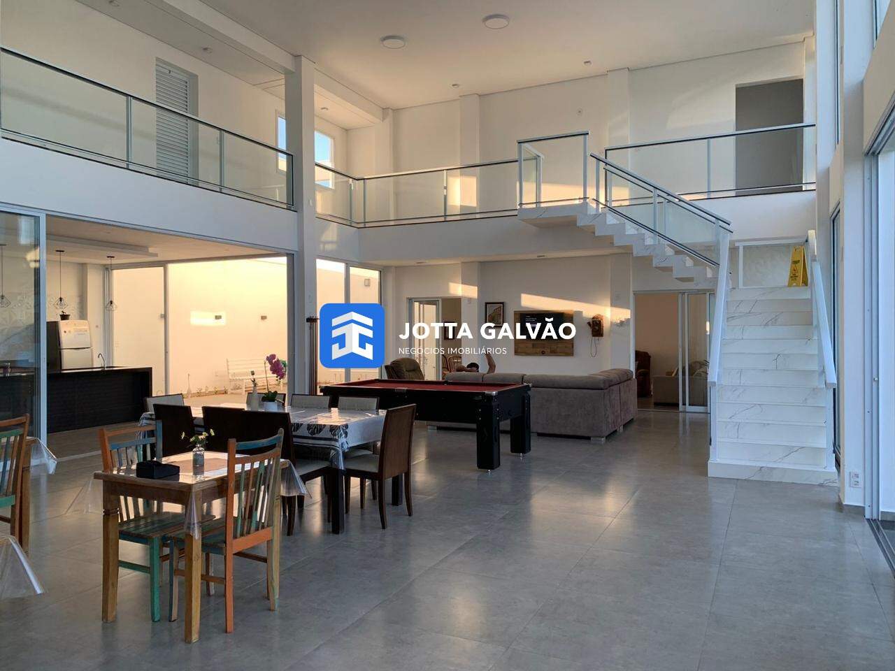 No térreo da casa principal, você encontrará uma lavanderia, vestiários masculino e feminino, um banheiro social, poço do elevador, uma ampla sala de TV e uma sala principal de 120 metros quadrados, proporcionando um ambiente espaçoso e confortável para momentos em família ou com amigos. A cozinha e o espaço gourmet são integrados, facilitando o preparo de refeições e oferecendo uma experiência gastronômica completa. Além disso, um encantador jardim de inverno proporciona um espaço a mais para momentos de relaxamento e contemplação.