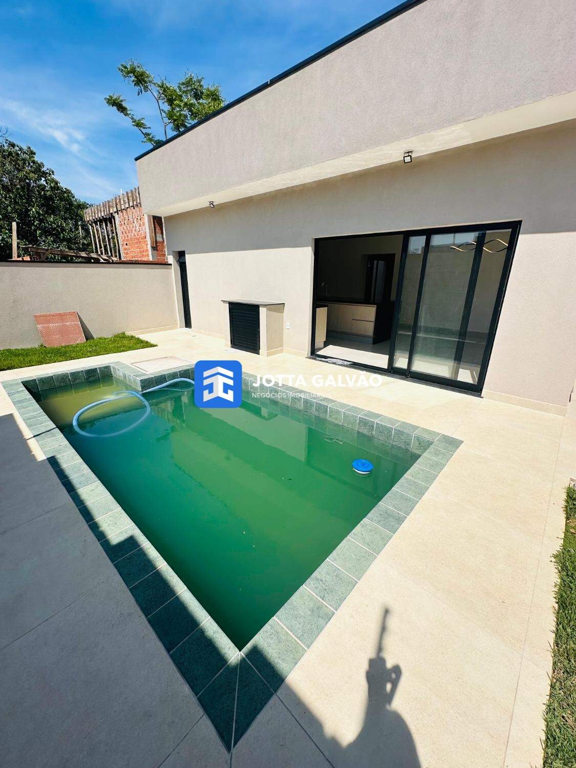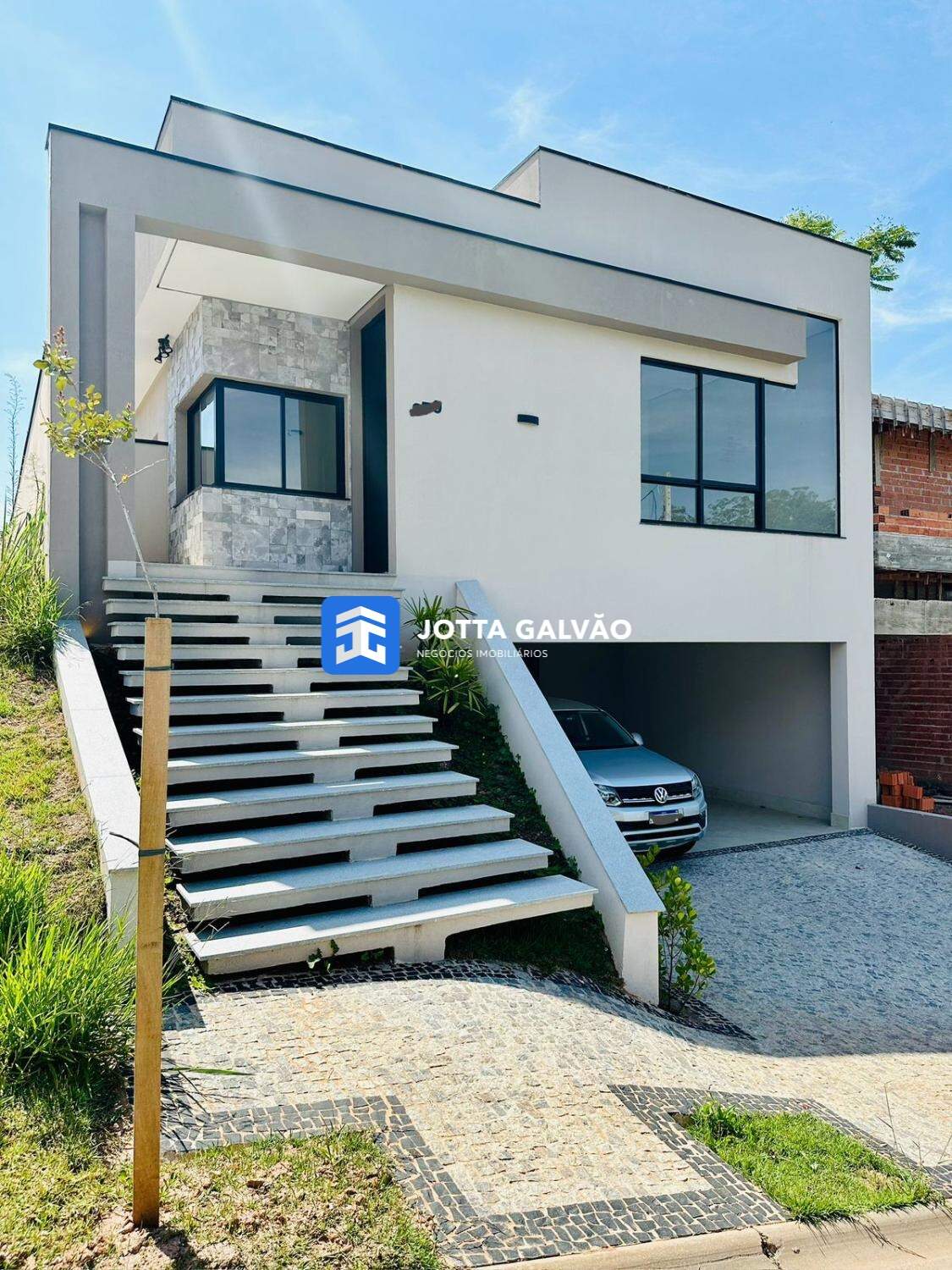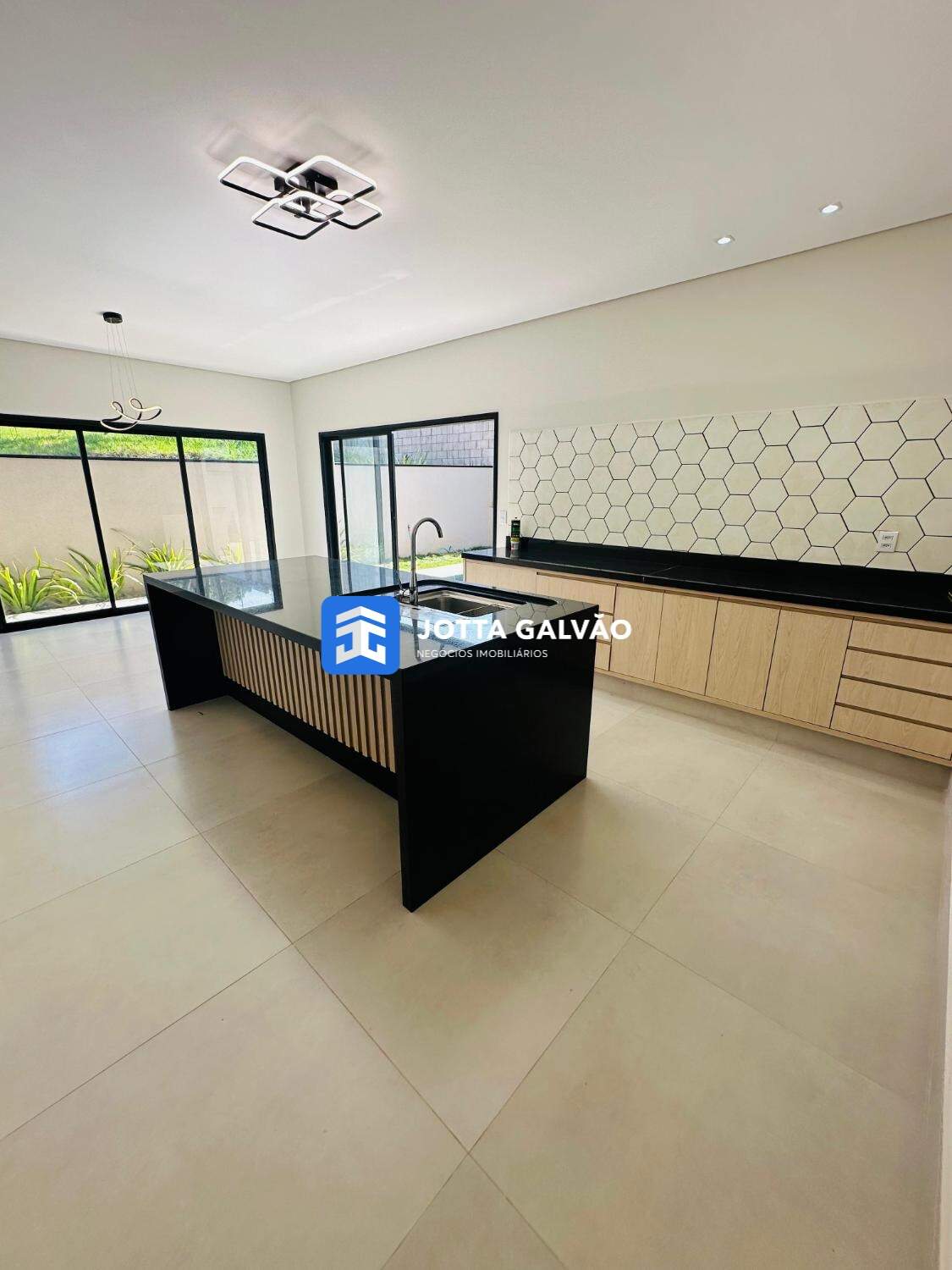 Esta casa nova à venda em Valinhos apresenta um projeto diferenciado com 213 m² de área útil. A cozinha possui um conceito aberto com ilha, integrando-se ao espaço gourmet e churrasqueira, além de oferecer uma vista encantadora para a piscina com prainha. A suíte master conta com closet e banheiro iluminado por uma claraboia.