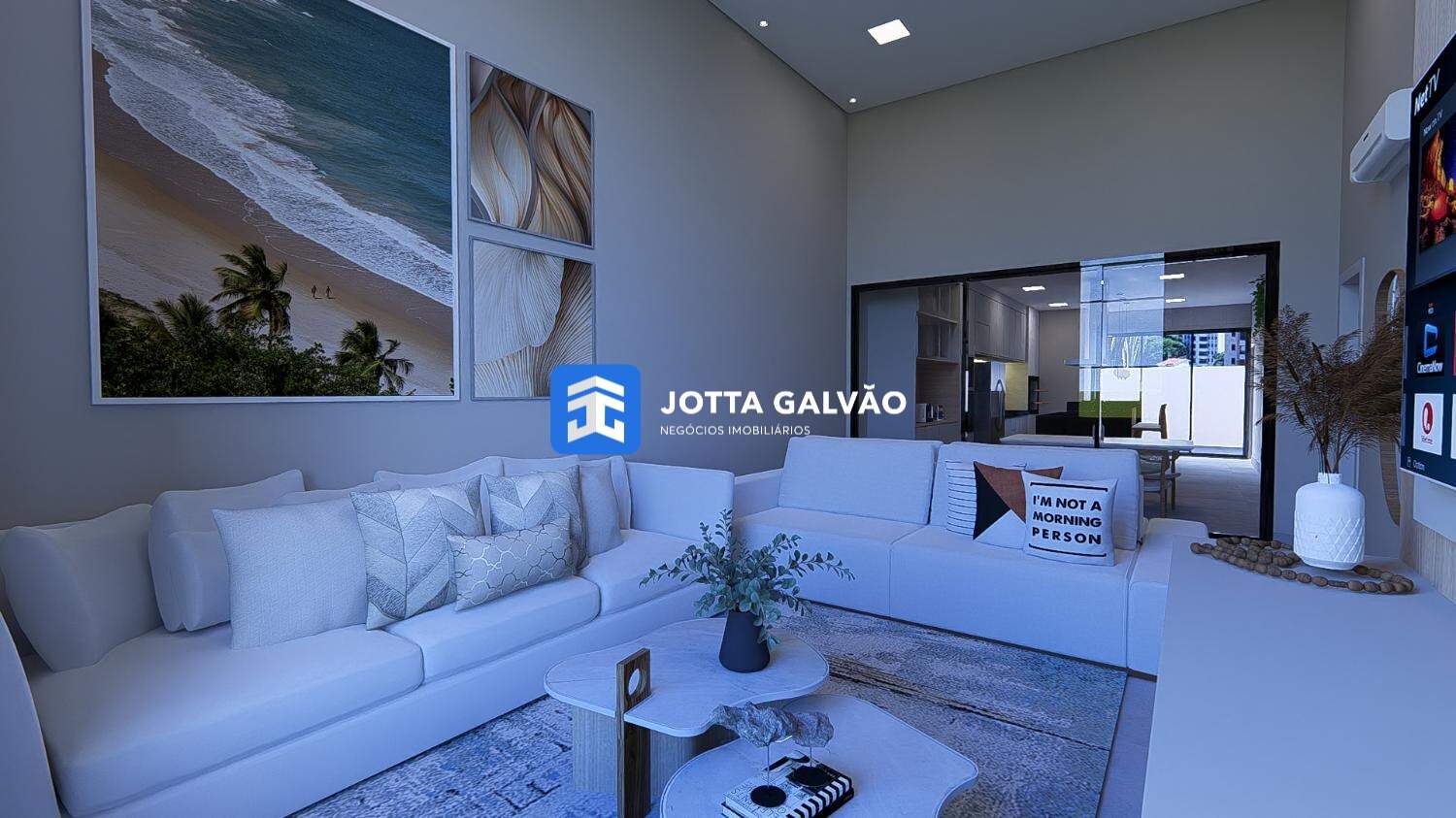 Sala de estar e jantar com pé-direito duplo