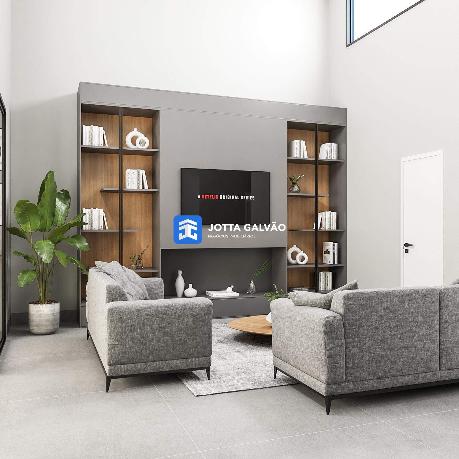 Sala de estar e jantar com pé-direito duplo
