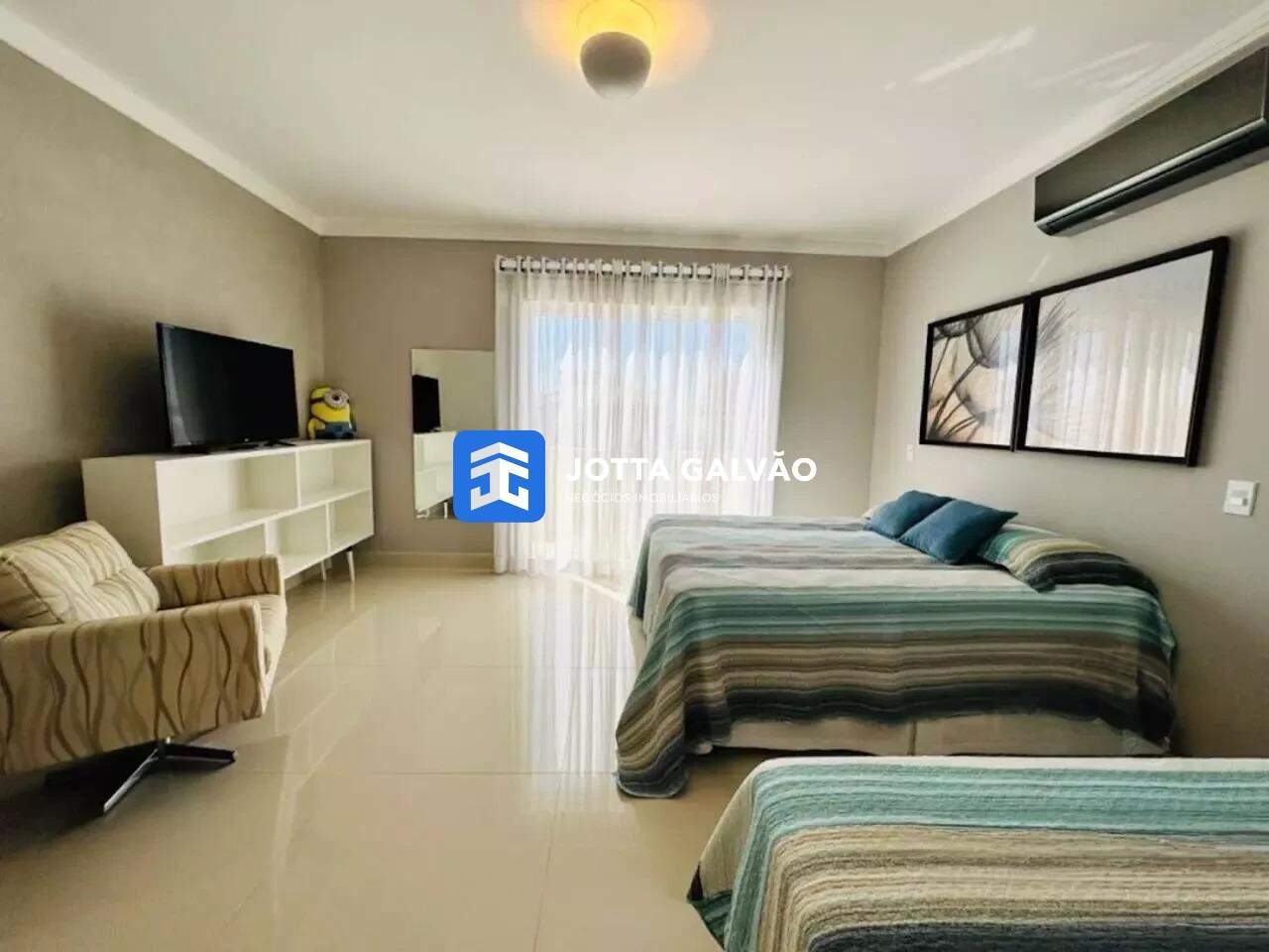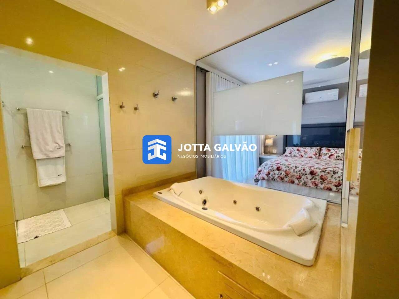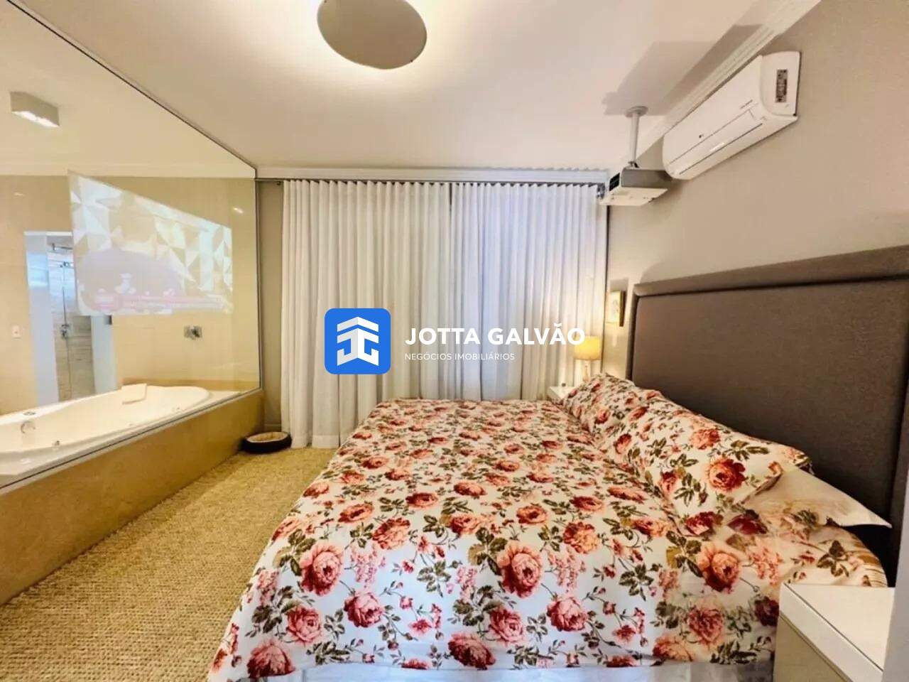 3 suítes com sacadas, sendo a master com hidromassagem dupla e projetor para assistir da cama e da banheira