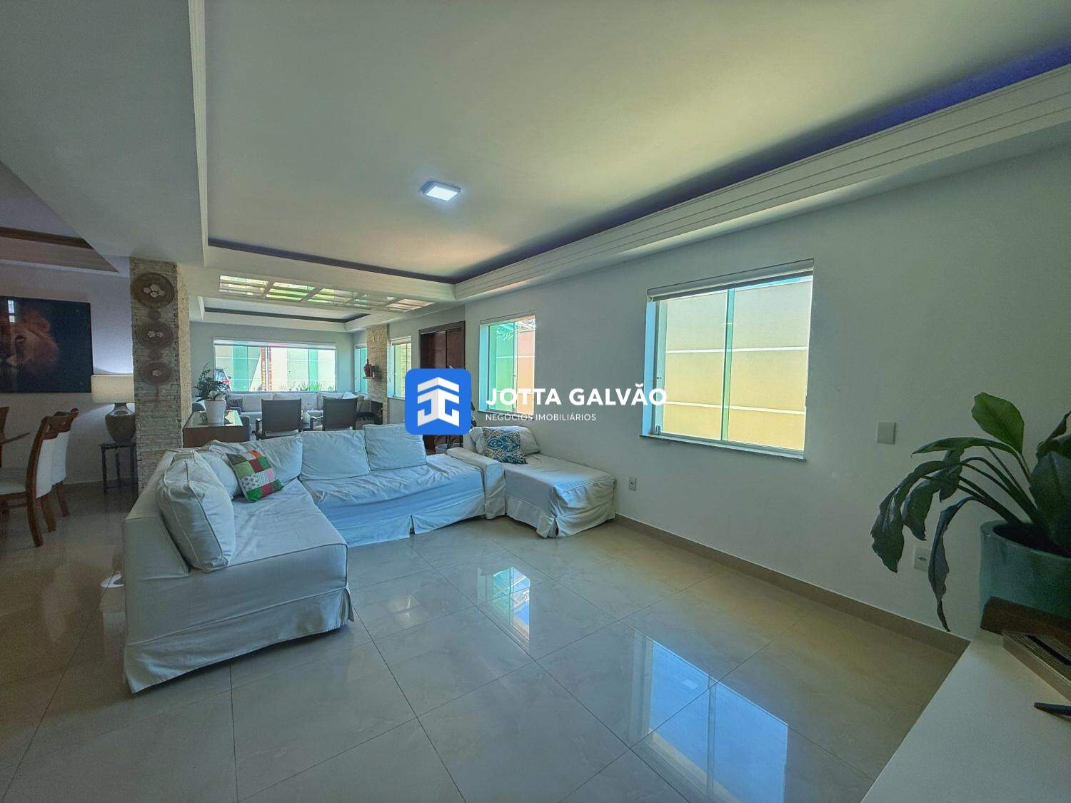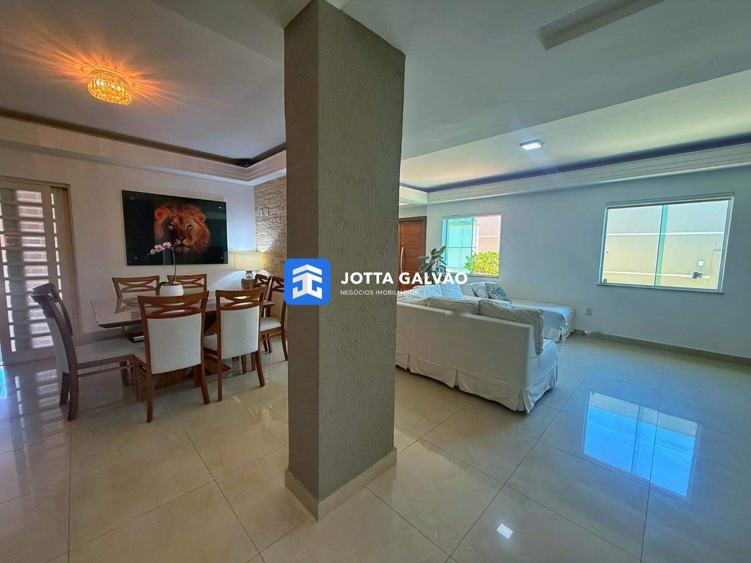 Sala ampla para 3 ambientes, com excelente iluminação natural