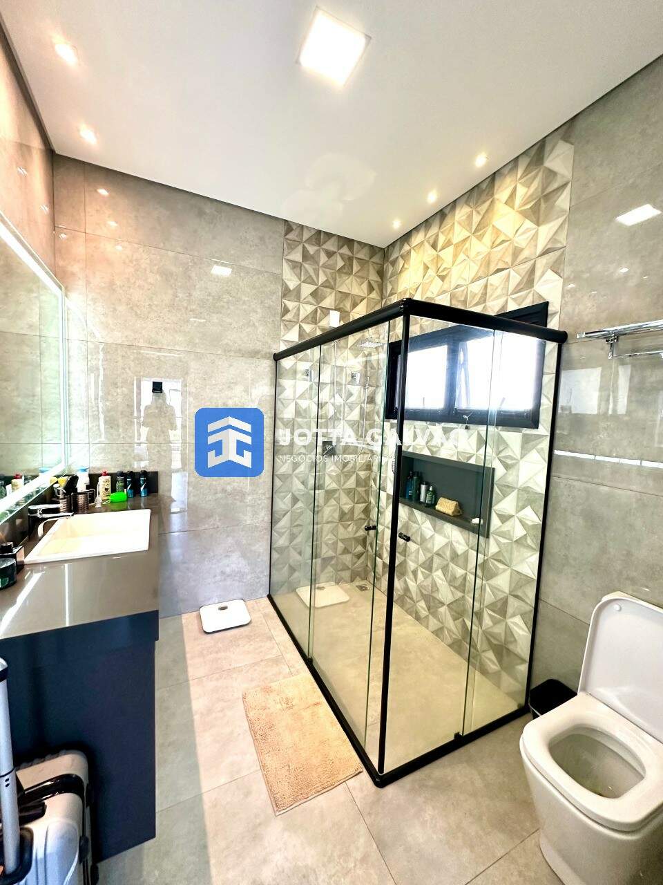 4 banheiros bem distribuídos, para que todos possam desfrutar de momentos de relaxamento sem espera.