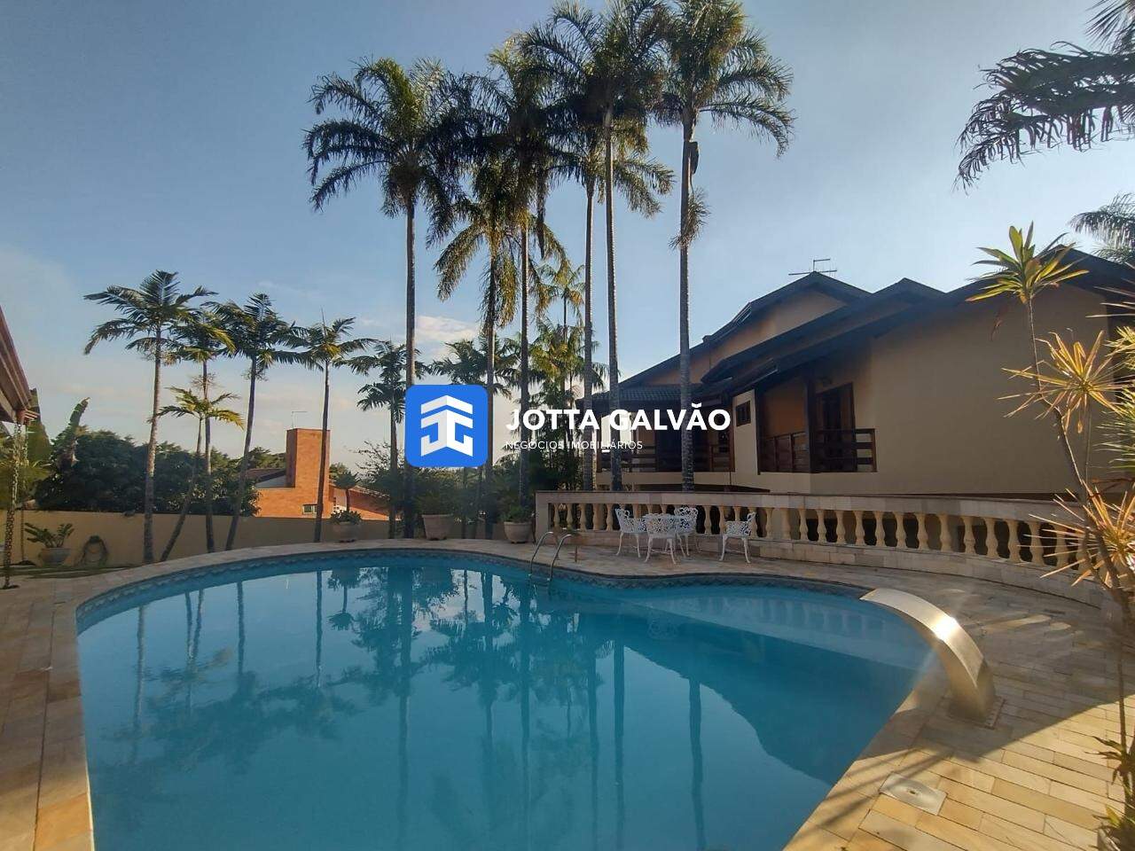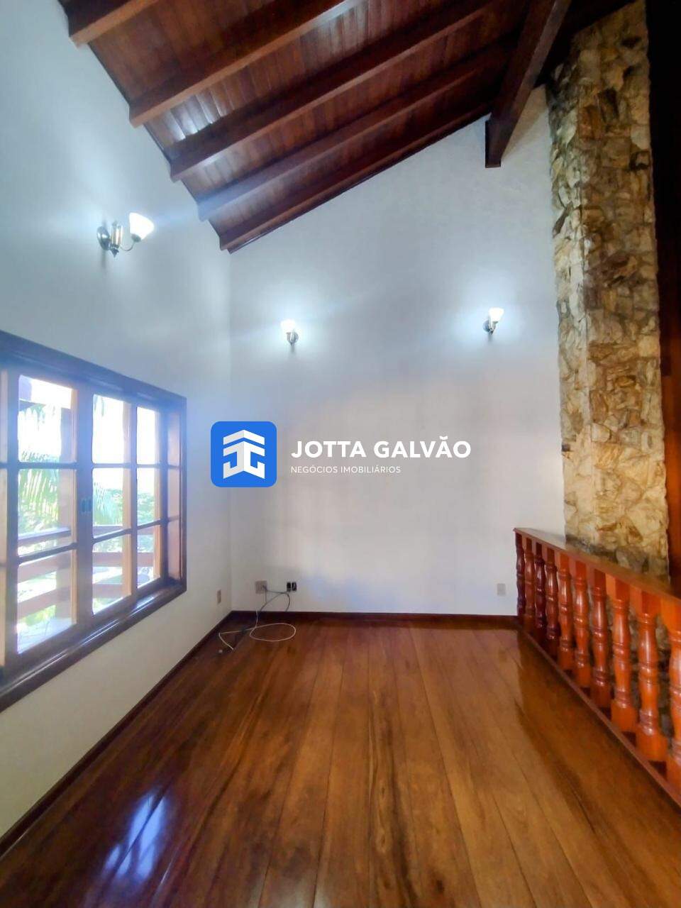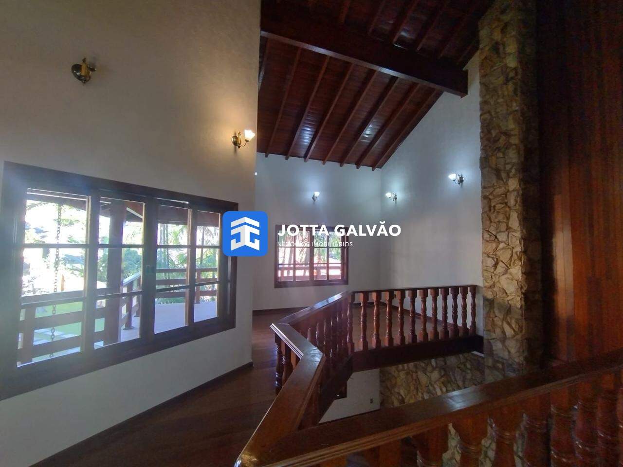 A casa é espaçosa e conta com cinco suítes, proporcionando muito espaço e conforto para toda a família. Na parte superior, são quatro amplas suítes, todas elas equipadas com armários embutidos e com sacadas individuais, oferecendo uma vista privilegiada e particular. Além das suítes, há uma sala de estar na parte superior com uma vista ampla para toda a área de lazer.