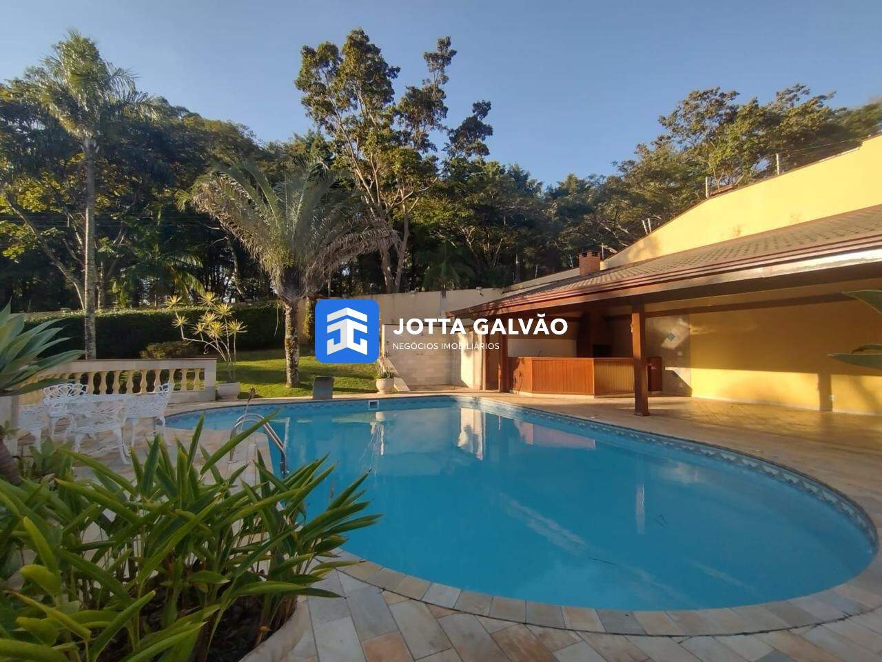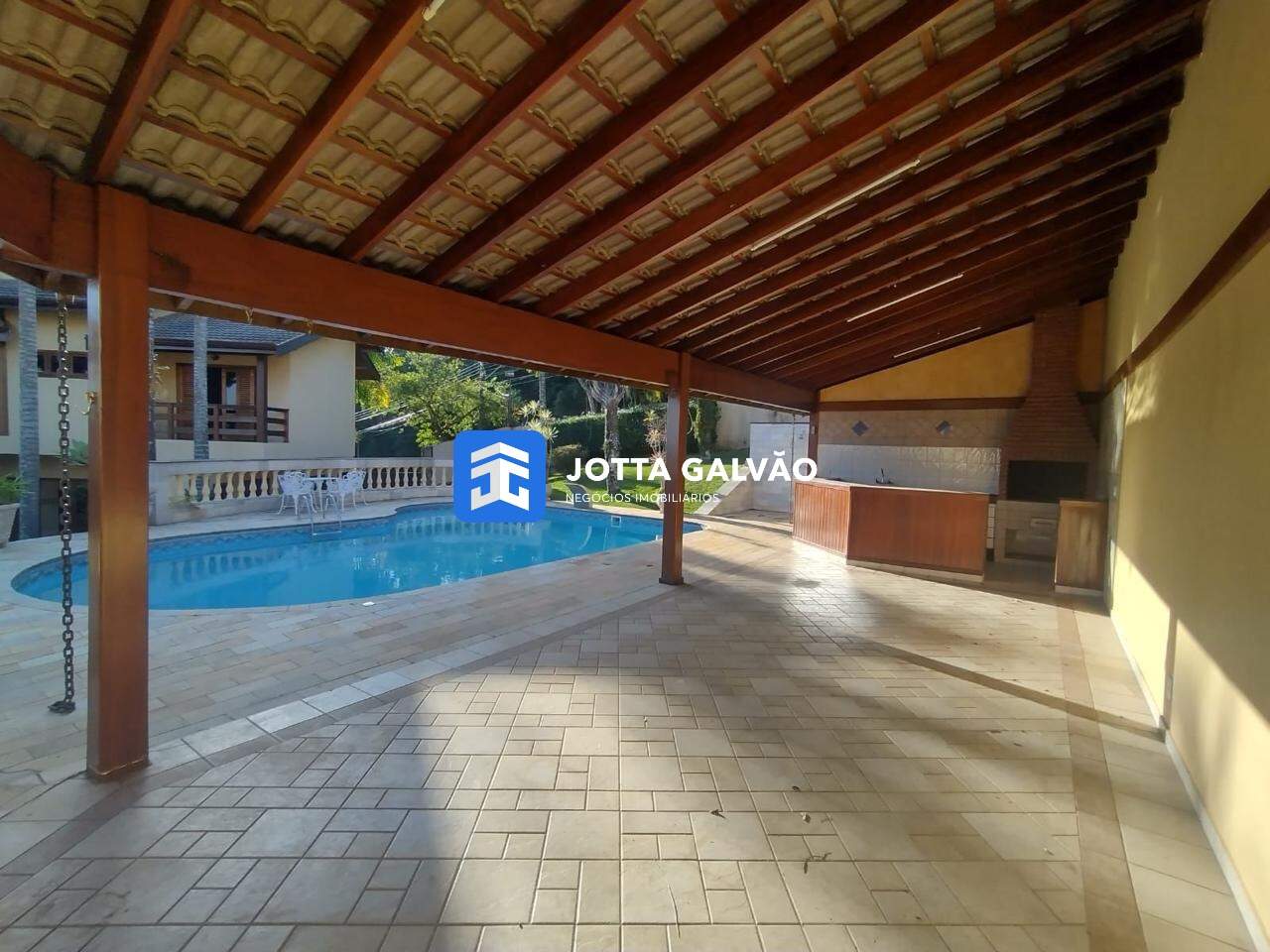 A área de lazer é completa, oferecendo todos os recursos para momentos de diversão e relaxamento em família. Ela inclui uma ampla piscina, um quintal com gramado, um canil e uma churrasqueira. Além disso, há um quarto adicional com muitos armários e um banheiro, possibilitando diversas utilizações.