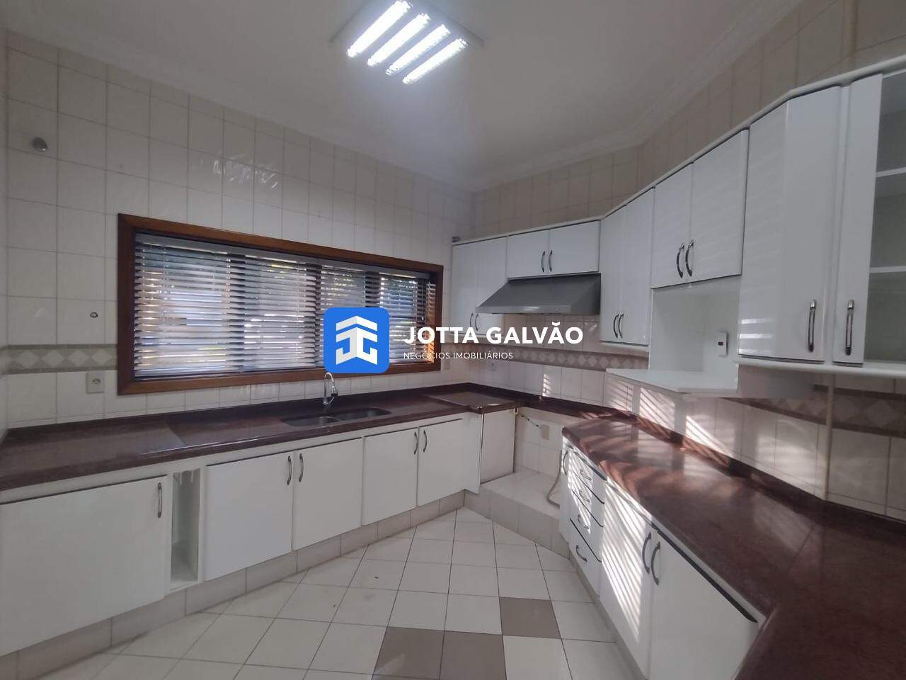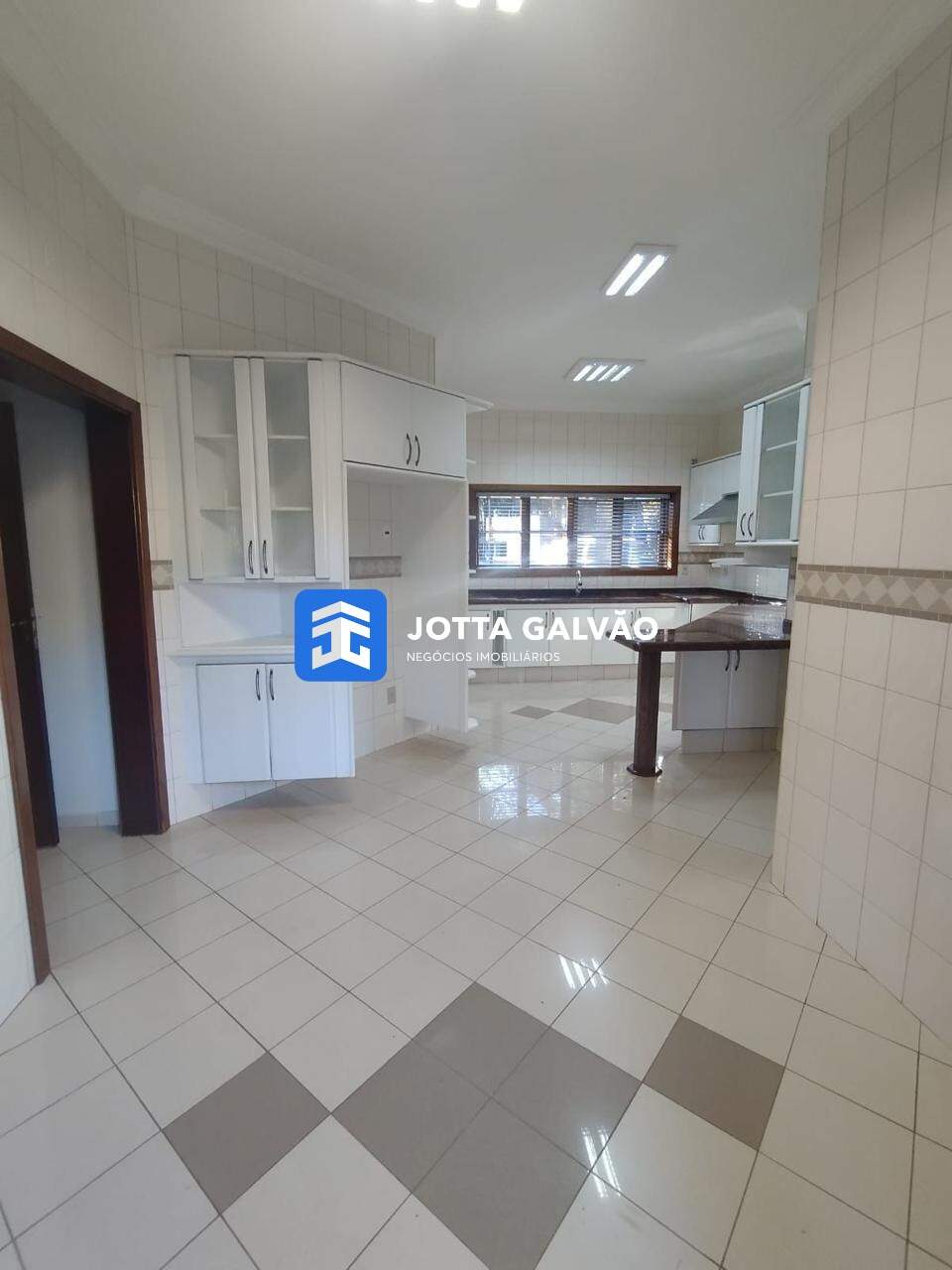 A cozinha é ampla e funcional, equipada com despensa e uma área para refeições. Ao lado da cozinha, há uma espaçosa área de lavanderia.