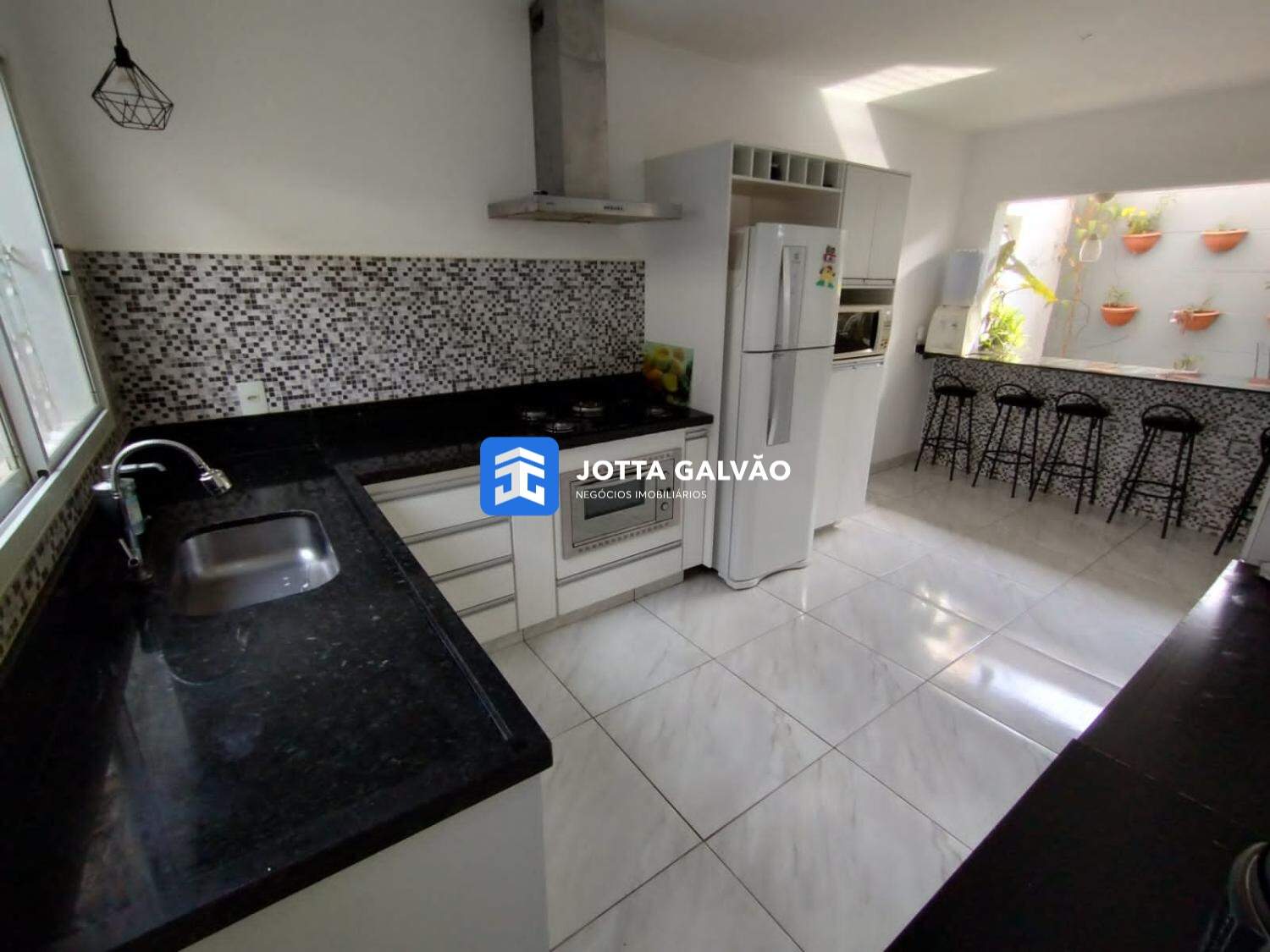 Casa com 3 quartos (sendo uma suíte), 2 banheiros, sala e cozinha amplas, gás encanado, 3 vagas de garagem cobertas e uma descoberta (no momento, uma parte da garagem foi fechada para o funcionamento de uma loja de roupas).