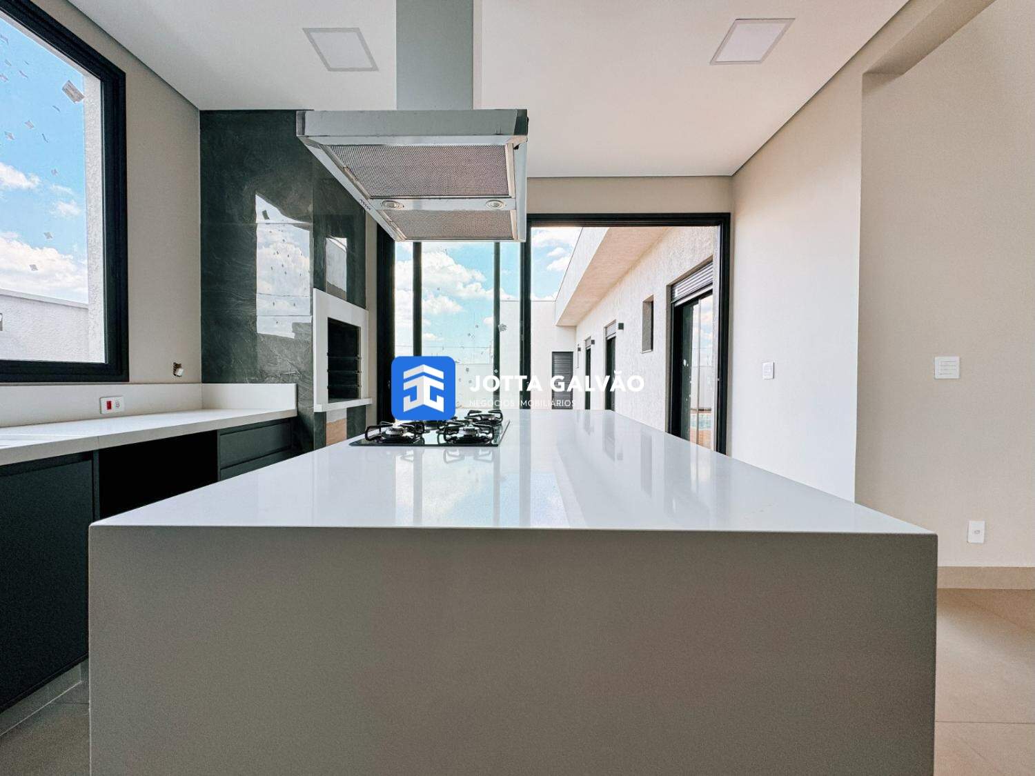 Entre os diferenciais, destacam-se a marmoraria em Quartzo Branco, esquadrias automatizadas, metais e louças Deca nos banheiros, pisos de 93x93 cm, e um sistema de aquecimento solar instalado. A casa será entregue com cooktop e forno Brastemp, coifa de ilha e armários planejados. O design da planta é integrado, com bastante iluminação natural e arquitetura moderna, proporcionando um ambiente sofisticado e acolhedor.