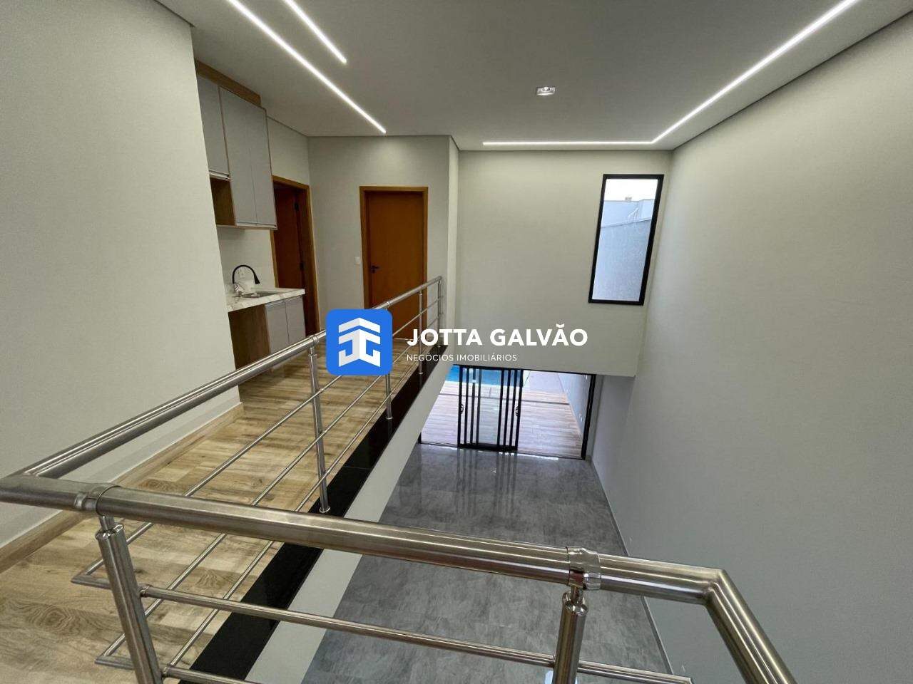 No andar superior, a casa dispõe de três suítes, sendo uma master com closet e sacada, além de um corredor de acesso às suítes com pia e armário de apoio. Todos os dormitórios e o escritório estão preparados para ar-condicionado, proporcionando conforto durante todo o ano. A parte inferior do imóvel conta com uma suíte acessível para cadeirantes, além de uma sala ampla e também preparada para ar-condicionado.