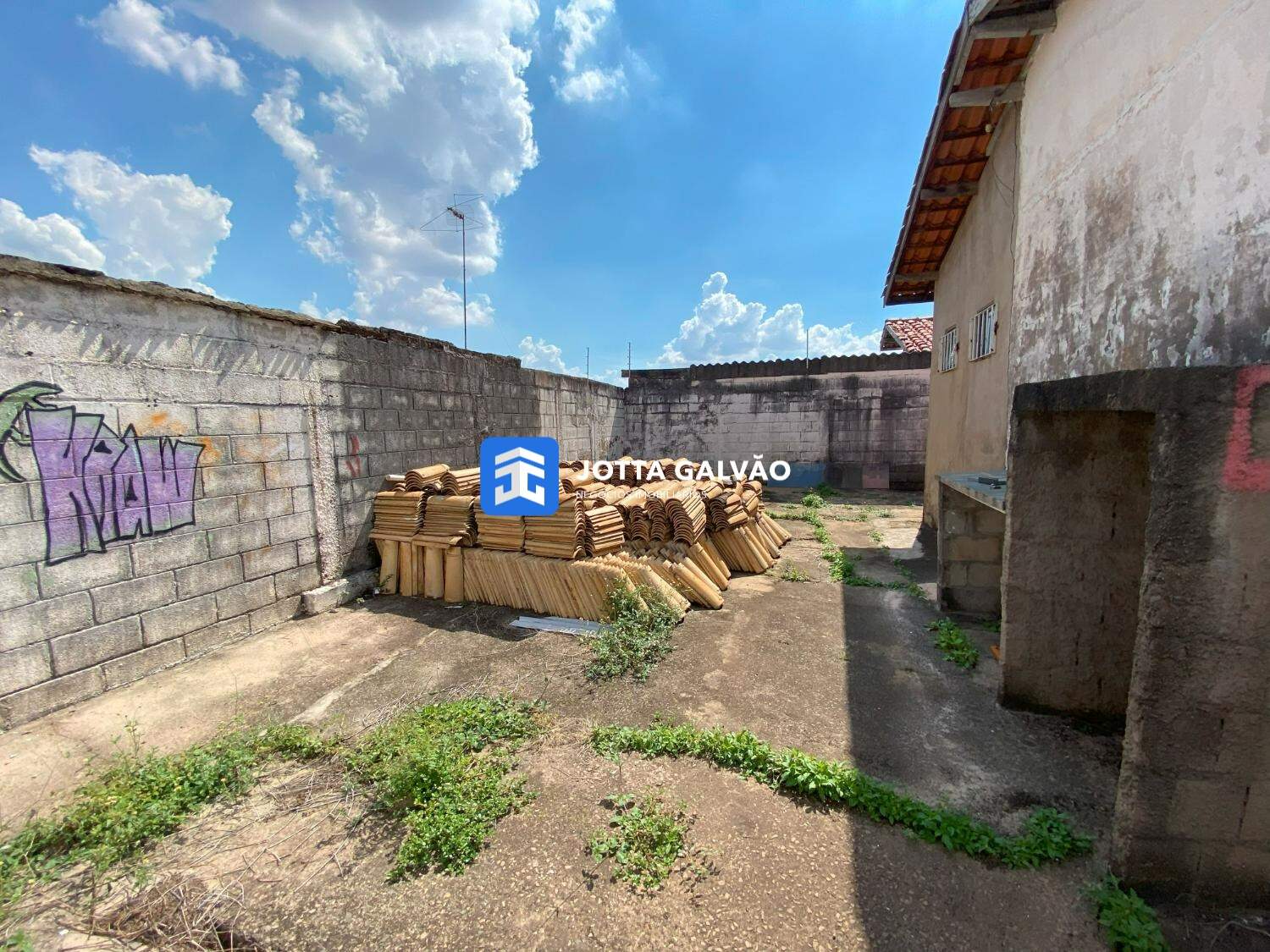 Internamente, dispõe de um salão principal com banheiros masculino e feminino, amplo corredor lateral e quintal que favorecem futuras ampliações, além de uma área coberta e fechada na lateral.