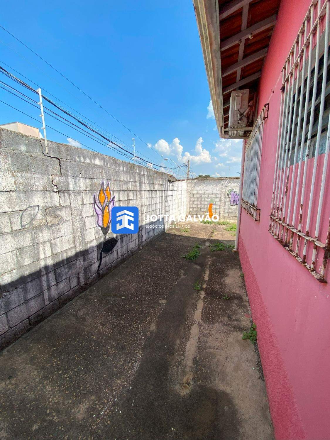 Possui recuo frontal com capacidade para até cinco veículos, além de ser isolado no terreno, permitindo diversas possibilidades de uso e ampliação.