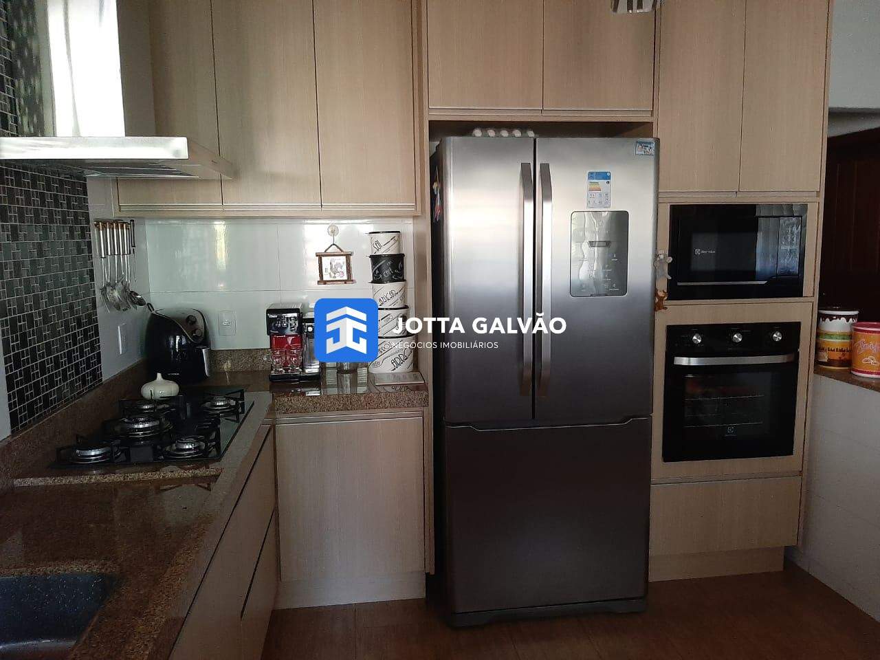 A cozinha estilo americana possui um balcão em granito e fogão embutido, perfeita para quem gosta de cozinhar e receber amigos e família. Os dormitórios contam com armários coordenados, garantindo praticidade e organização.